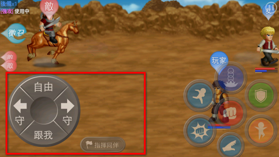 1、使用左側(cè)控制按鈕指揮隊友,選擇自由、守、跟我等指令,讓隊友配合自己作戰(zhàn),根據(jù)戰(zhàn)場情況調(diào)整隊友行動。
