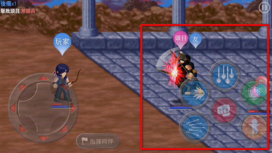 3、點擊右側(cè)技能按鈕釋放技能,攻擊敵方頭目,與隊友協(xié)同作戰(zhàn),全力擊敗敵方頭目,推進(jìn)戰(zhàn)斗進(jìn)程。