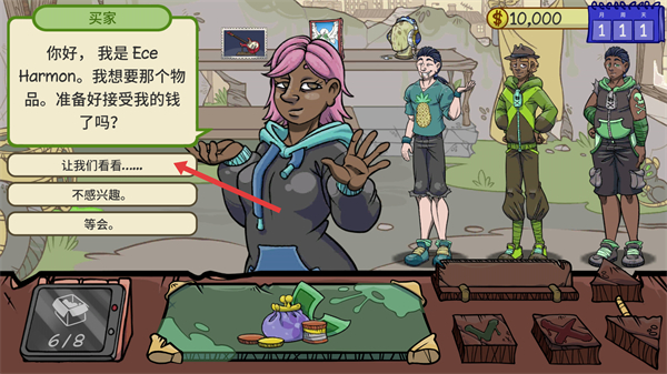 2、遇到買家時選擇讓我們看看選項,查看買家想要的物品,進入物品詳情查看的環(huán)節(jié)。