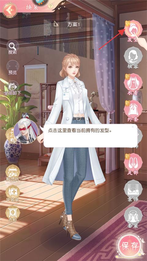 1、觸發(fā)換裝劇情后,點(diǎn)擊進(jìn)入換裝界面,可查看發(fā)型、妝容、衣著等多個(gè)裝扮分類(lèi),每個(gè)分類(lèi)下有不同風(fēng)格的裝扮可供選擇。