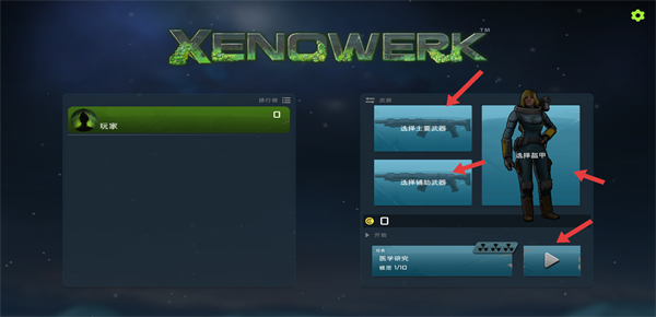 1、選擇主要武器輔助武器和盔甲搭配好裝備后點擊開始,進入XENOWERK的戰(zhàn)斗場景開啟地下實驗室的冒險。