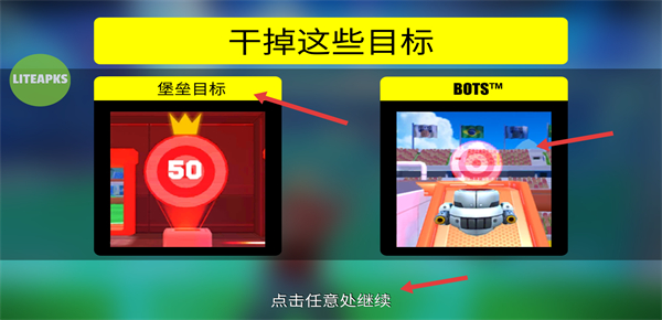 1、了解目標(biāo)類型包括堡壘目標(biāo)和BOTS點(diǎn)擊任意處繼續(xù),準(zhǔn)備進(jìn)入射擊戰(zhàn)斗場景開啟目標(biāo)消滅任務(wù)。