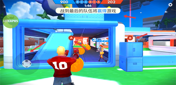 3、進(jìn)入對戰(zhàn)后明確戰(zhàn)到最后的隊(duì)伍獲勝規(guī)則,利用場景中的A、B區(qū)域和掩體與隊(duì)友配合消滅敵人爭奪比賽勝利。