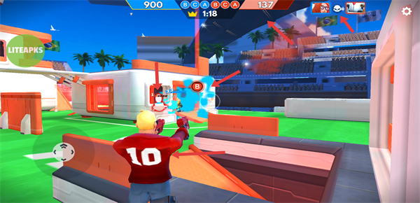 1、在對戰(zhàn)中收集金幣利用場景中的A、B區(qū)域掩體移動,瞄準(zhǔn)敵人射擊同時(shí)關(guān)注隊(duì)伍分?jǐn)?shù)和時(shí)間為勝利積累優(yōu)勢。