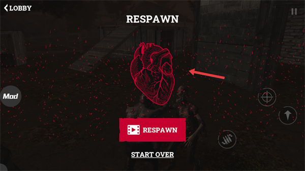 4、若被擊敗可選擇RESPAWN復(fù)活或重新開始,復(fù)活后繼續(xù)參與戰(zhàn)斗積累僵尸擊殺經(jīng)驗(yàn)爭(zhēng)取存活到最后。