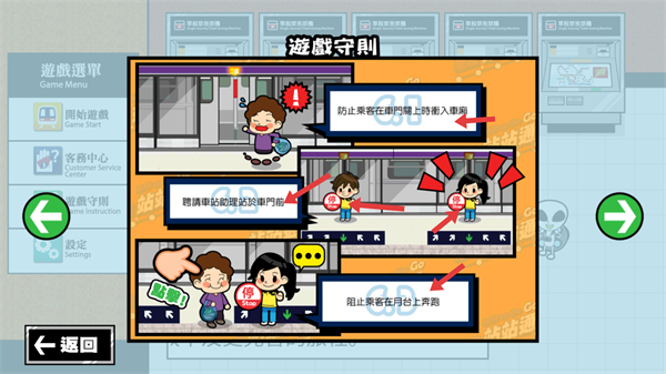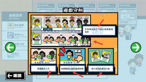 1、點(diǎn)擊開(kāi)始游戲進(jìn)入港鐵站站通的游戲場(chǎng)景,開(kāi)啟地鐵運(yùn)營(yíng)管理的挑戰(zhàn)學(xué)習(xí)如何高效管理車(chē)站。