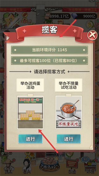 3、選擇攬客方式如舉辦送雞蛋活動進行攬客操作,提升環(huán)境評分增加攬客數(shù)量市場客源擴大。