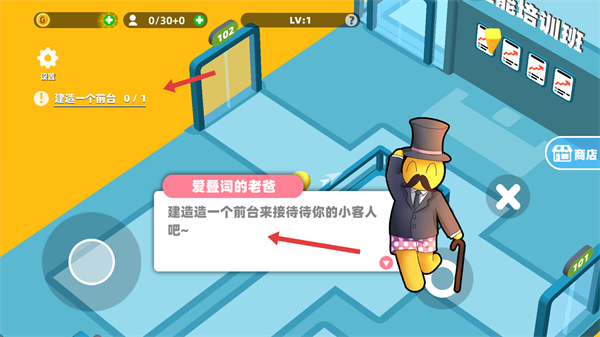 1、按照提示建造前臺用于接待小客人,推進游戲任務提升培訓班的運營基礎(chǔ)。