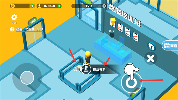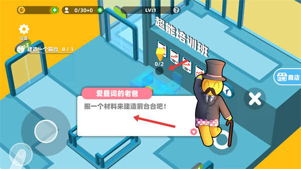 3、操控角色搬運材料將材料放置到指定位置,完成前臺的建造流程逐步完善培訓班設(shè)施。