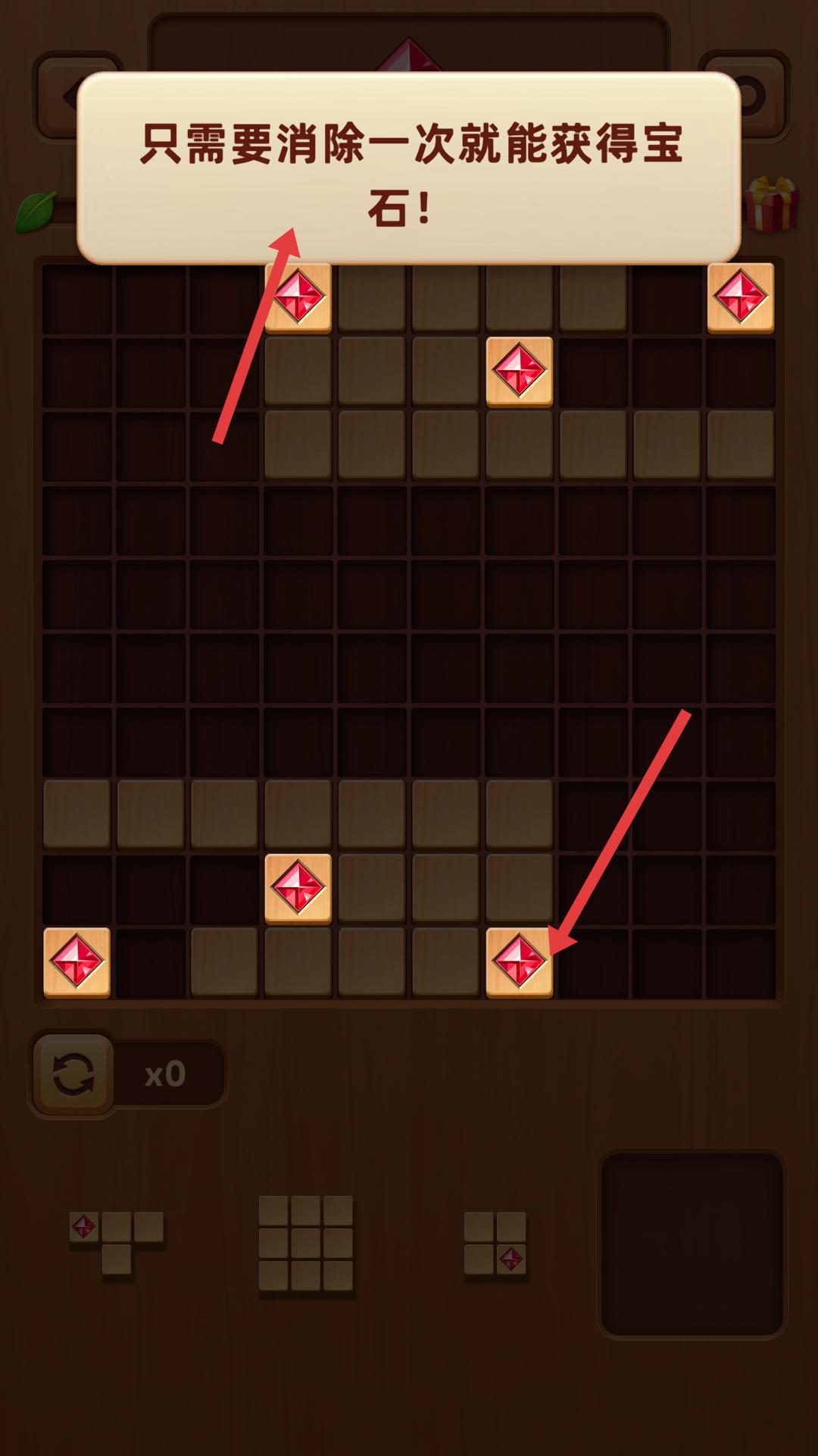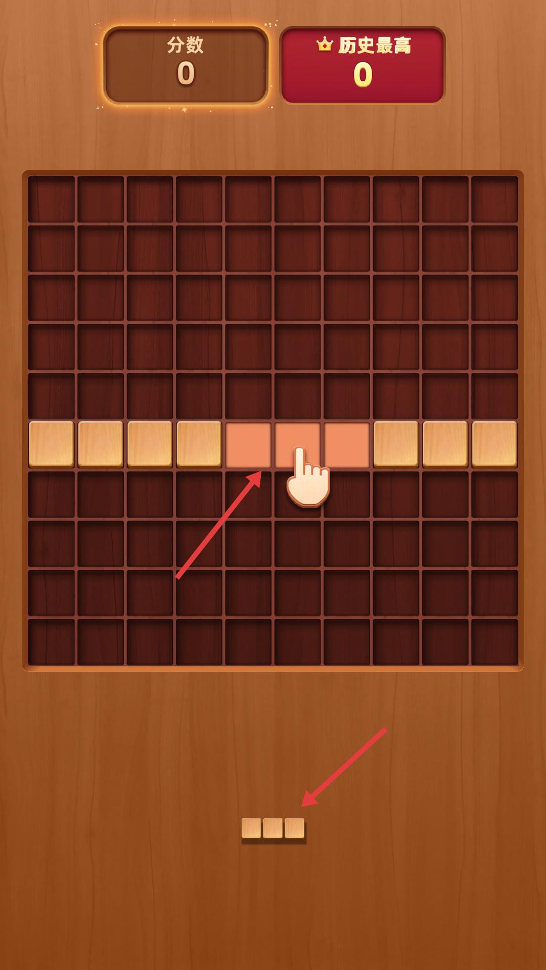 1、按照提示,把下方的方塊拖到棋盤上對應位置,完成方塊放置,這是游戲基礎操作,能開啟后續(xù)玩法。