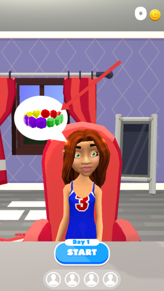 1、游戲開始,顧客腦海中浮現(xiàn)出彩色珠子的樣式,點擊START按鈕,開啟手鏈制作流程。