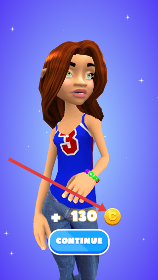 4、完成手鏈制作后,會獲得金幣獎勵如加130,點擊CONTINUE按鈕,可繼續(xù)為下一位顧客制作手鏈。