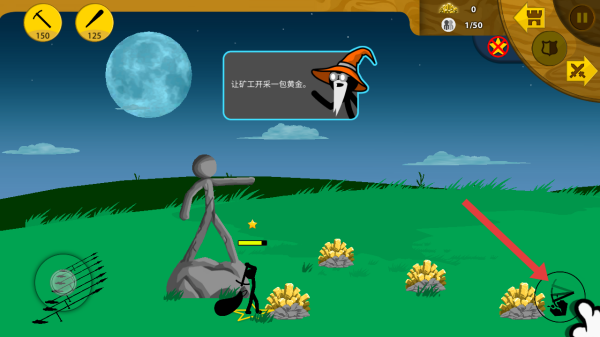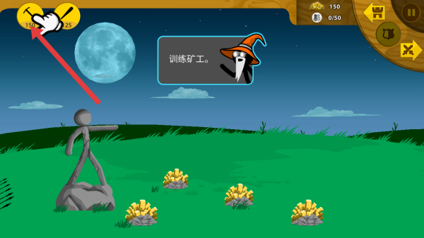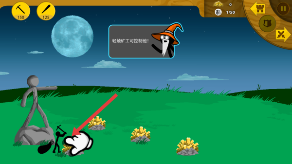 4、還會(huì)有遭遇對手的攻擊,需要操控礦工或派出礦工隊(duì)伍進(jìn)行挖礦,派出棍棒手攻擊對面試想保衛(wèi)領(lǐng)地。