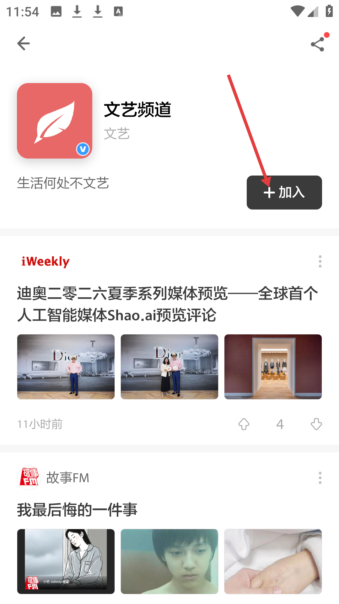3、找到心儀頻道如文藝頻道,進入其詳情頁點擊頁面的加號加入按鈕,該頻道就成功添加到你的訂閱列表,后續(xù)可在訂閱欄快速查看其更新內容。