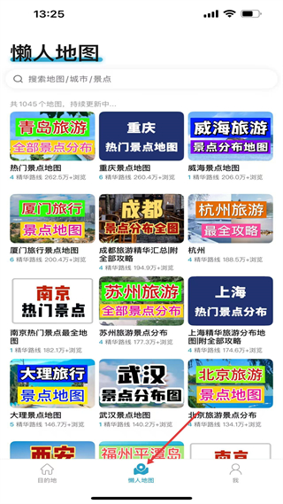 2、懶人地圖板塊,涵蓋青島、重慶、威海等多地景點(diǎn)地圖,還有廈門、成都等旅行地圖,方便規(guī)劃行程。