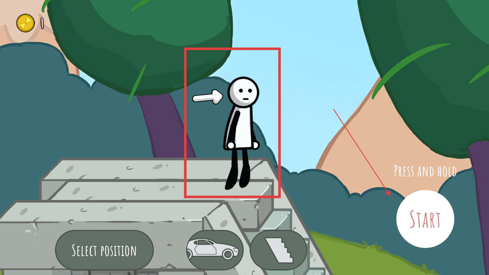 2、在關(guān)卡場(chǎng)景中點(diǎn)擊Start按鈕,操控火柴人開(kāi)始移動(dòng),根據(jù)場(chǎng)景中的箭頭等提示,引導(dǎo)火柴人向目標(biāo)方向前進(jìn),探索關(guān)卡內(nèi)容。