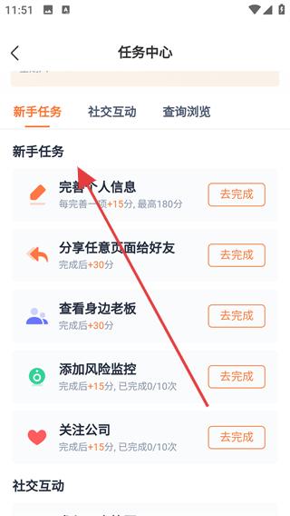 3、若積分不足點(diǎn)擊積分不足,去賺積分按鈕,進(jìn)入任務(wù)中心頁面,這里有新手任務(wù)、社交互動(dòng)等分類。