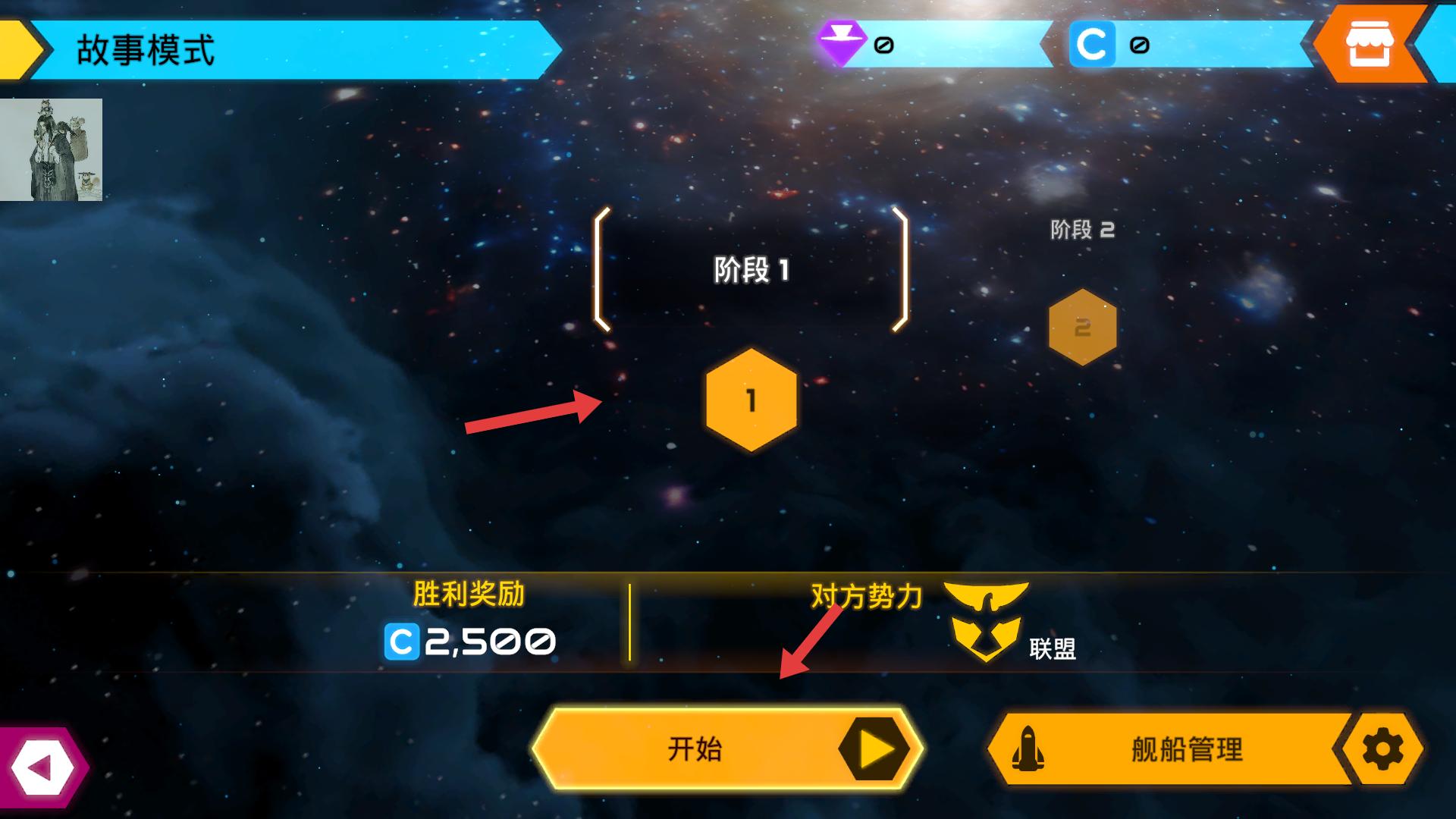 3、選擇故事模式后,會進入關(guān)卡選擇界面,顯示不同階段的關(guān)卡,點擊開始按鈕,就能進入對應(yīng)關(guān)卡的戰(zhàn)斗準備環(huán)節(jié)。