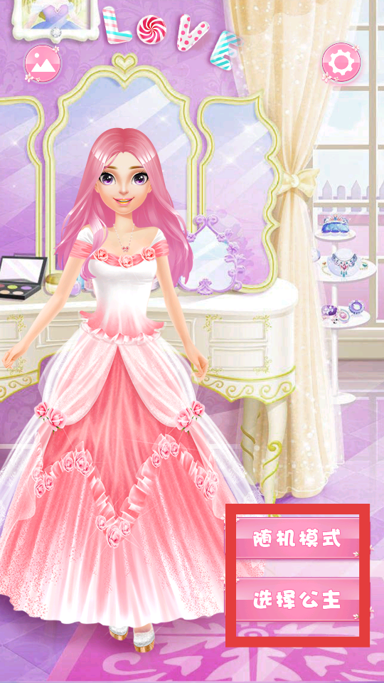 2、然后進(jìn)入化妝場(chǎng)景后,可以選擇隨機(jī)模式,或者點(diǎn)擊選擇公主選你想裝扮的公主角色。