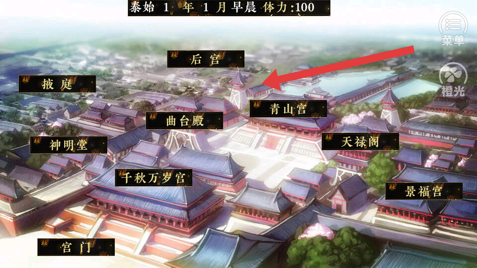 2、游戲中有后宮、掖庭、青山宮等多個宮殿場景,點擊相應場景名稱,可前往該地點與其中的人物互動或開展相關活動。