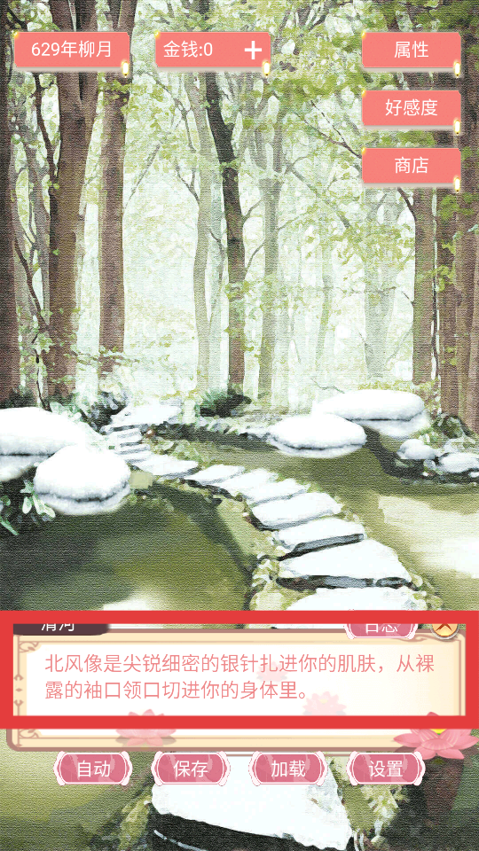 2、動態(tài)養(yǎng)成系統(tǒng):從12歲到18歲的成長歷程中,每月可自由分配琴棋書畫等修習項目。屬性數(shù)值不僅影響劇情走向,更能解鎖特殊對話與服飾裝扮收集要素。