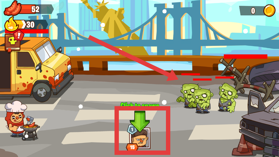 2、在戰(zhàn)斗過(guò)程中消耗相應(yīng)資源,玩家點(diǎn)擊帶有角色頭像的招募按鈕,可以召喚己方戰(zhàn)斗單位,加入到對(duì)抗僵尸的戰(zhàn)斗中增強(qiáng)防御力量。