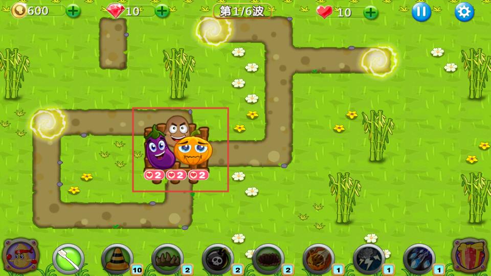 1、在菜園合適位置布置蔬菜戰(zhàn)士,不同蔬菜戰(zhàn)士有不同防御能力,合理安排它們的位置,構(gòu)建防御陣線。
