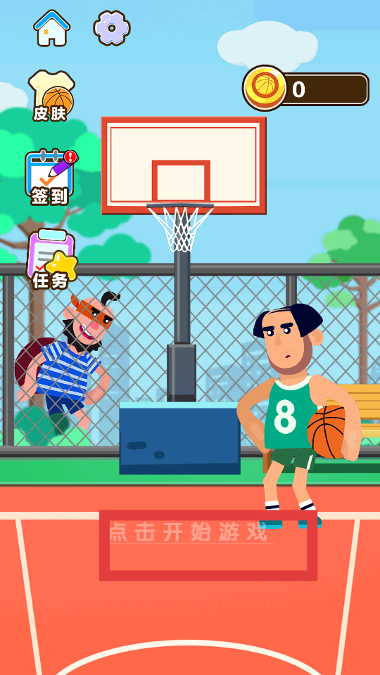 2、進(jìn)入禿頭籃球先生游戲場(chǎng)景后,點(diǎn)擊開始游戲,利用界面中的皮膚選項(xiàng),消耗金幣解鎖更換角色外觀,增加游戲趣味性。