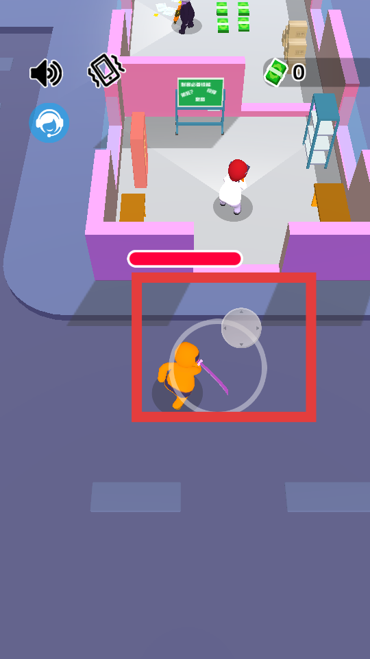 2、玩家通過滑動屏幕來控制角色移動,利用場景中的障礙物等,悄悄接近敵人,進行突襲攻擊。