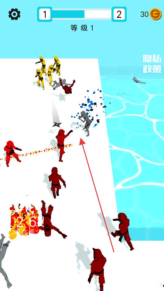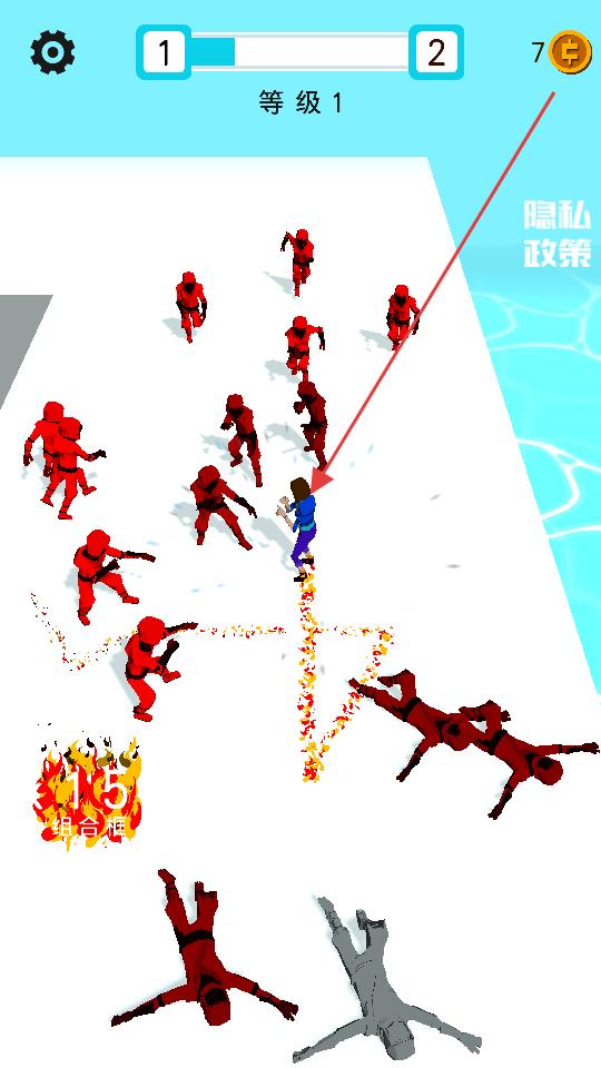 3、持續(xù)對紅色敵人進行攻擊,擊敗紅色敵人后,繼續(xù)前進,會遇到其他的敵人,同樣使用格斗技能,與這些敵人戰(zhàn)斗,推進闖關進度。