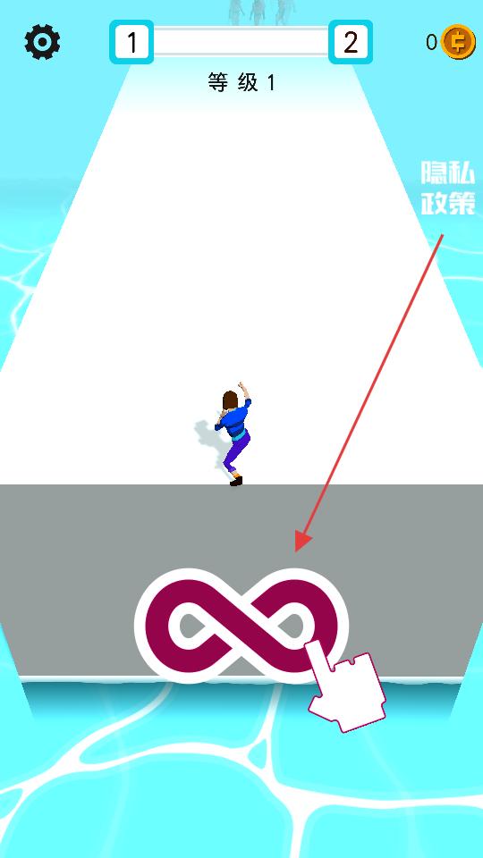 1、進入等級1關卡,操控角色在賽道上前進,看到帶有特殊標識的區(qū)域,讓角色接觸該區(qū)域,為后續(xù)格斗做準備,此時注意角色與標識區(qū)域的距離。