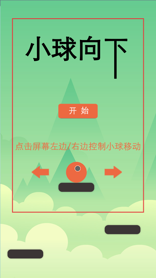 2、點擊開始按鈕,進(jìn)入游戲后,通過點擊屏幕左邊或右邊,控制小球左右移動,在平臺間下落。