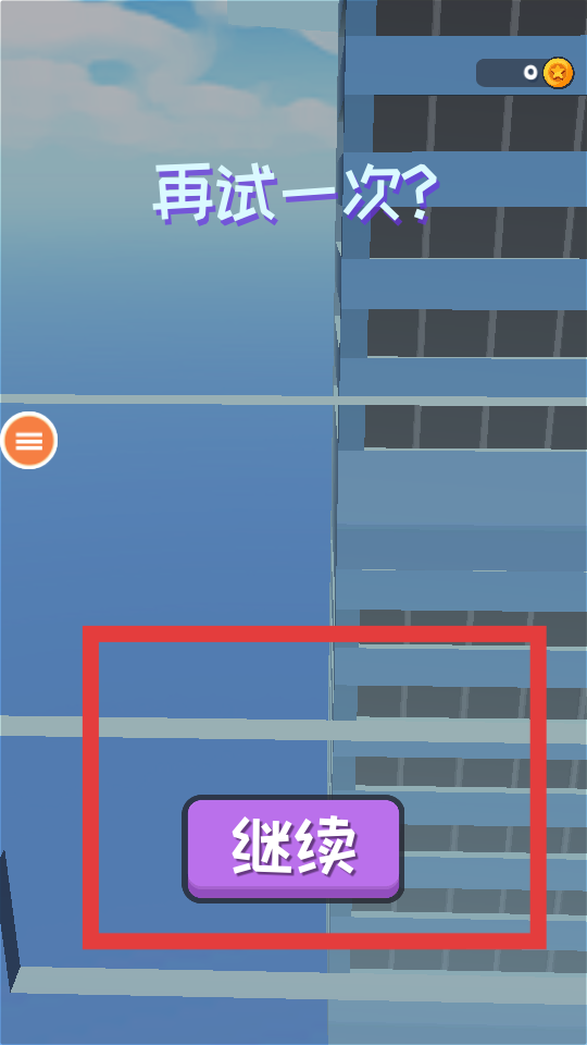 4、如果接球失敗,界面會出現(xiàn)再試一次的提示,此時點擊繼續(xù)按鈕,可重新開始游戲。