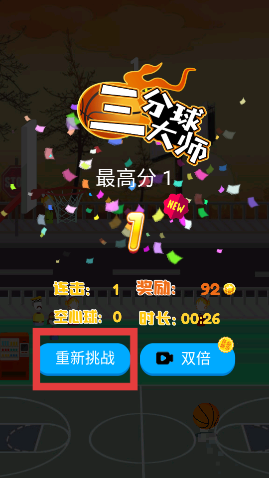 4、當(dāng)一局游戲結(jié)束后,如果對自己的成績不滿意,可以點擊重新挑戰(zhàn)按鈕,再次嘗試,沖擊更高的分數(shù)。