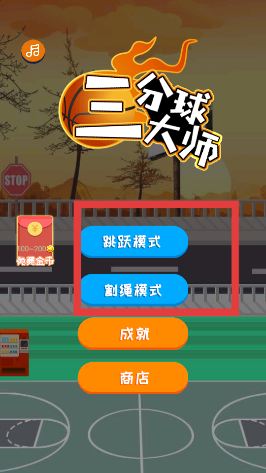 1、玩家下載游戲之后在游戲主界面選擇跳躍模式或割繩模式,不同模式有不同的投籃挑戰(zhàn)玩法,選擇自己感興趣的模式進入游戲。