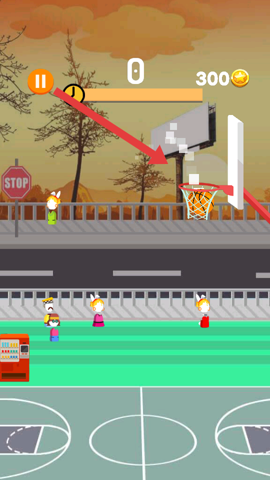 3、通過滑動屏幕或點擊等操作,規(guī)劃籃球的飛行軌跡,使其準(zhǔn)確落入籃筐得分,盡可能多地投進三分球,獲取更高分數(shù)。