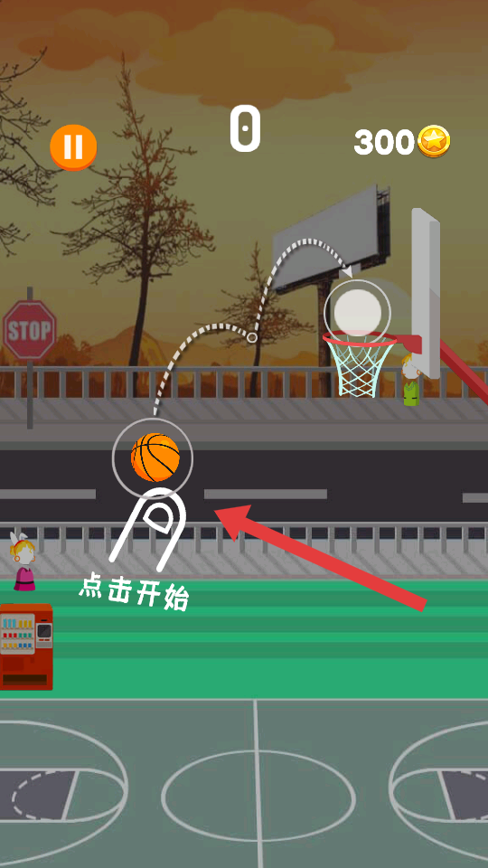 2、玩家進入所選模式后,點擊圖標(biāo)標(biāo)記點擊開始,按照游戲提示操作,控制籃球的投射角度和力度,嘗試將籃球投入籃筐。