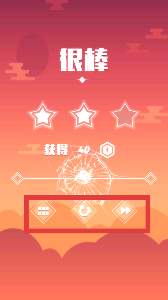 4、完成關(guān)卡后會出現(xiàn)關(guān)卡結(jié)算界面,顯示星級評價和獲得的獎勵,玩家可以通過紅框內(nèi)的按鈕選擇進(jìn)入下一關(guān)、重新挑戰(zhàn)本關(guān)或返回主界面。