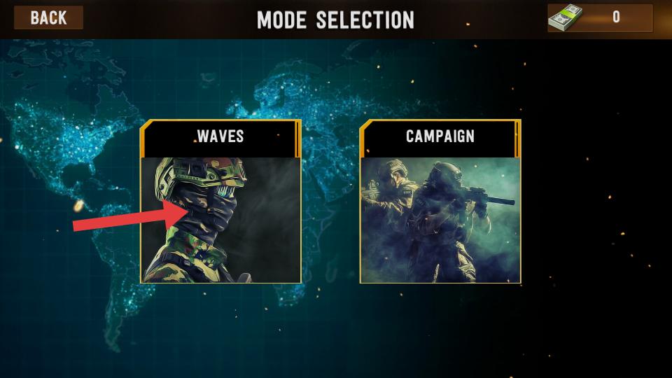 2、進入模式選擇界面,有WAVES和CAMPAIGN兩種模式,選擇WAVES模式,可體驗該模式下的戰(zhàn)斗玩法。