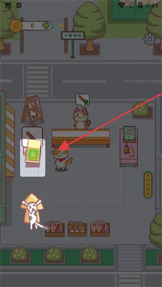 3、領(lǐng)取獎(jiǎng)勵(lì)后點(diǎn)擊攤位旁的貓咪,與貓咪進(jìn)行互動(dòng),查看新的經(jīng)營(yíng)提示或解鎖新的經(jīng)營(yíng)內(nèi)容推進(jìn)小吃攤的經(jīng)營(yíng)進(jìn)程。