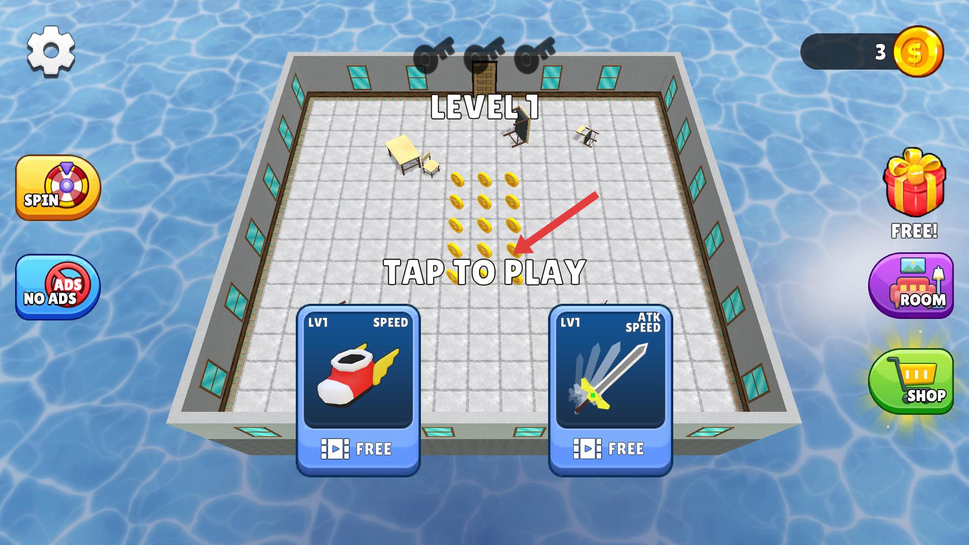 2、操控角色移動(dòng),攻擊目標(biāo)敵人,過程中注意收集金幣,為強(qiáng)化角色做準(zhǔn)備。