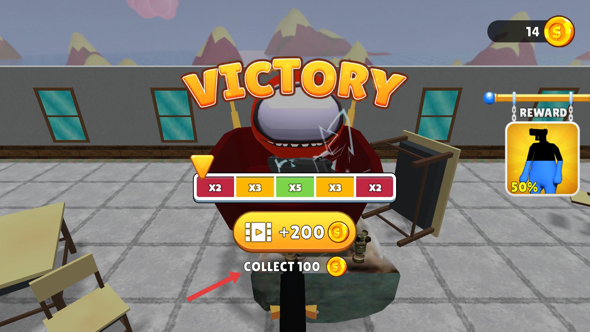 3、成功通關(guān)后,點(diǎn)擊【COLLECT】可領(lǐng)取100金幣獎(jiǎng)勵(lì),也能觀看視頻獲取更多金幣,用于角色提升。