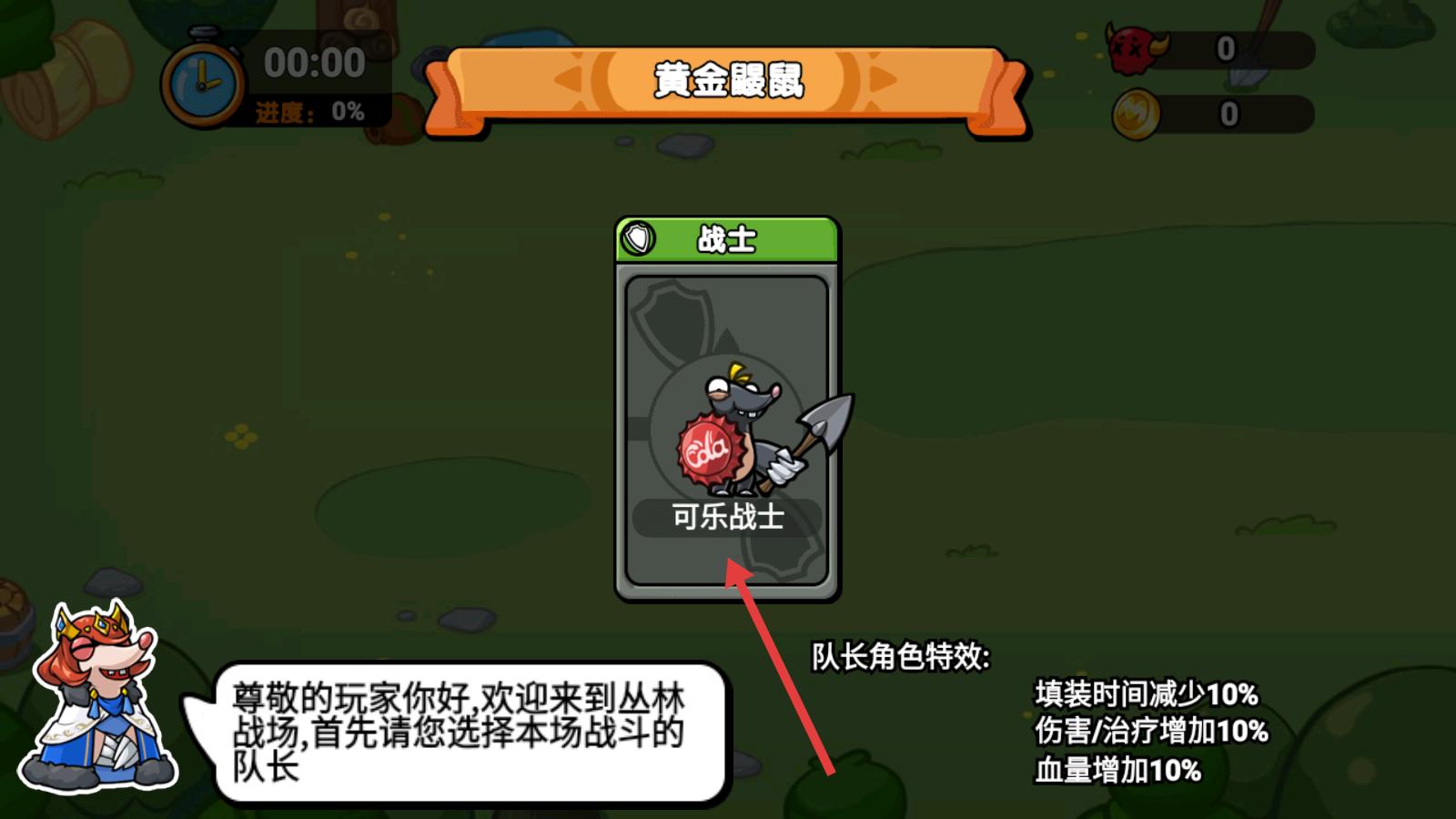 1、進(jìn)入佳作后,首先看到有可樂戰(zhàn)士角色卡,按照提示選擇該角色作為本場戰(zhàn)斗的隊(duì)長,即可進(jìn)入戰(zhàn)斗準(zhǔn)備階段。