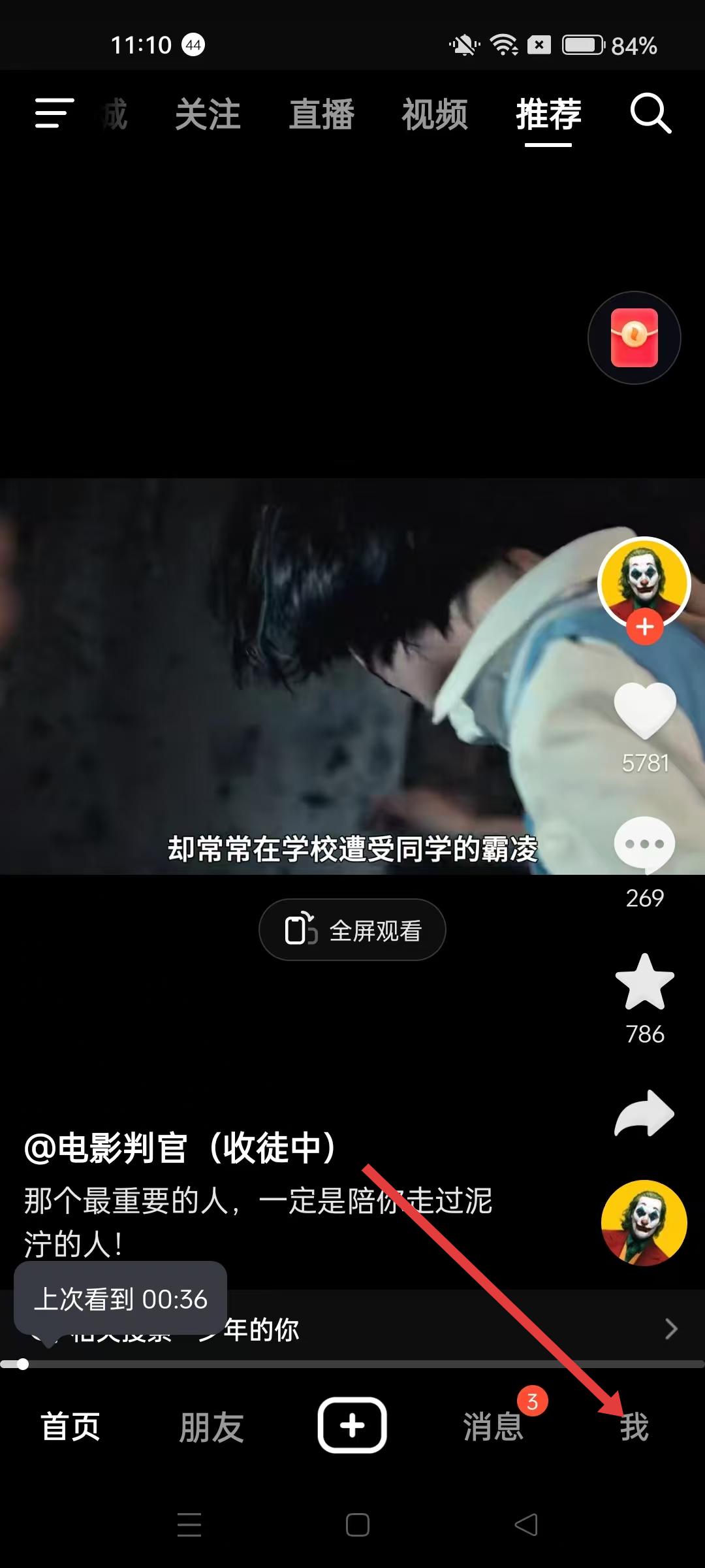 1、打開抖音進入推薦界面,點擊右下角我,進入個人相關(guān)功能頁面,開始隱私設(shè)置流程。