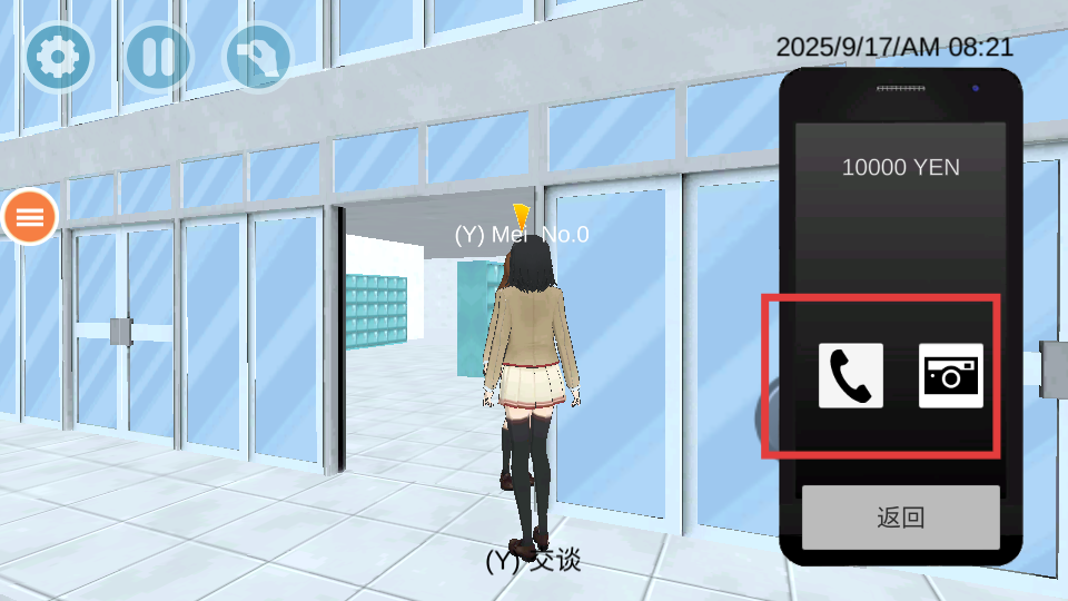 3、點(diǎn)擊界面左上方手機(jī),手機(jī)界面有電話和相機(jī)功能,可利用這些功能,與其他角色通話或拍攝場(chǎng)景,豐富玩家游戲體驗(yàn)。