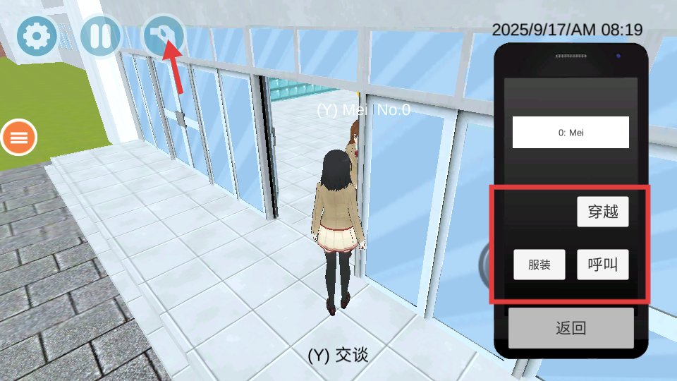 4、玩家點(diǎn)擊相關(guān)按鈕如電話功能,手機(jī)會(huì)出現(xiàn)穿越、服裝、呼叫等選項(xiàng),選擇穿越可切換場(chǎng)景、呼叫能聯(lián)系其他角色等,助力探索游戲世界。