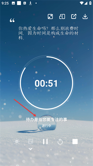 2、待辦專注板塊有計時功能,搭配你熱愛生命嗎的勵志語錄,可專注處理待辦事項,界面直觀,助力提升時間利用效率。