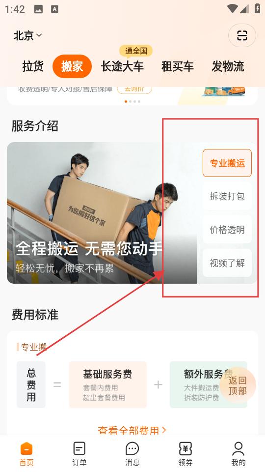 3、下單后,可查看服務介紹,了解專業(yè)搬運拆裝打包等內(nèi)容,清晰費用標準,如有疑問可返回頂部或聯(lián)系客服。