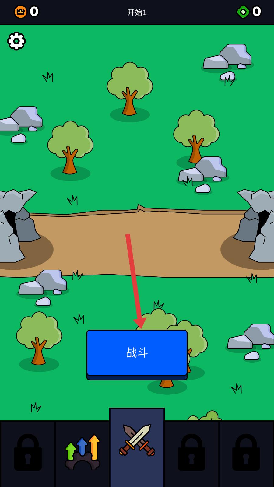 1、進(jìn)入佳作界面,中間有醒目的戰(zhàn)斗按鈕,點(diǎn)擊這個(gè)按鈕,便進(jìn)入戰(zhàn)斗場景,開啟與敵方單位的對(duì)抗,正式開啟游戲的戰(zhàn)斗進(jìn)程。