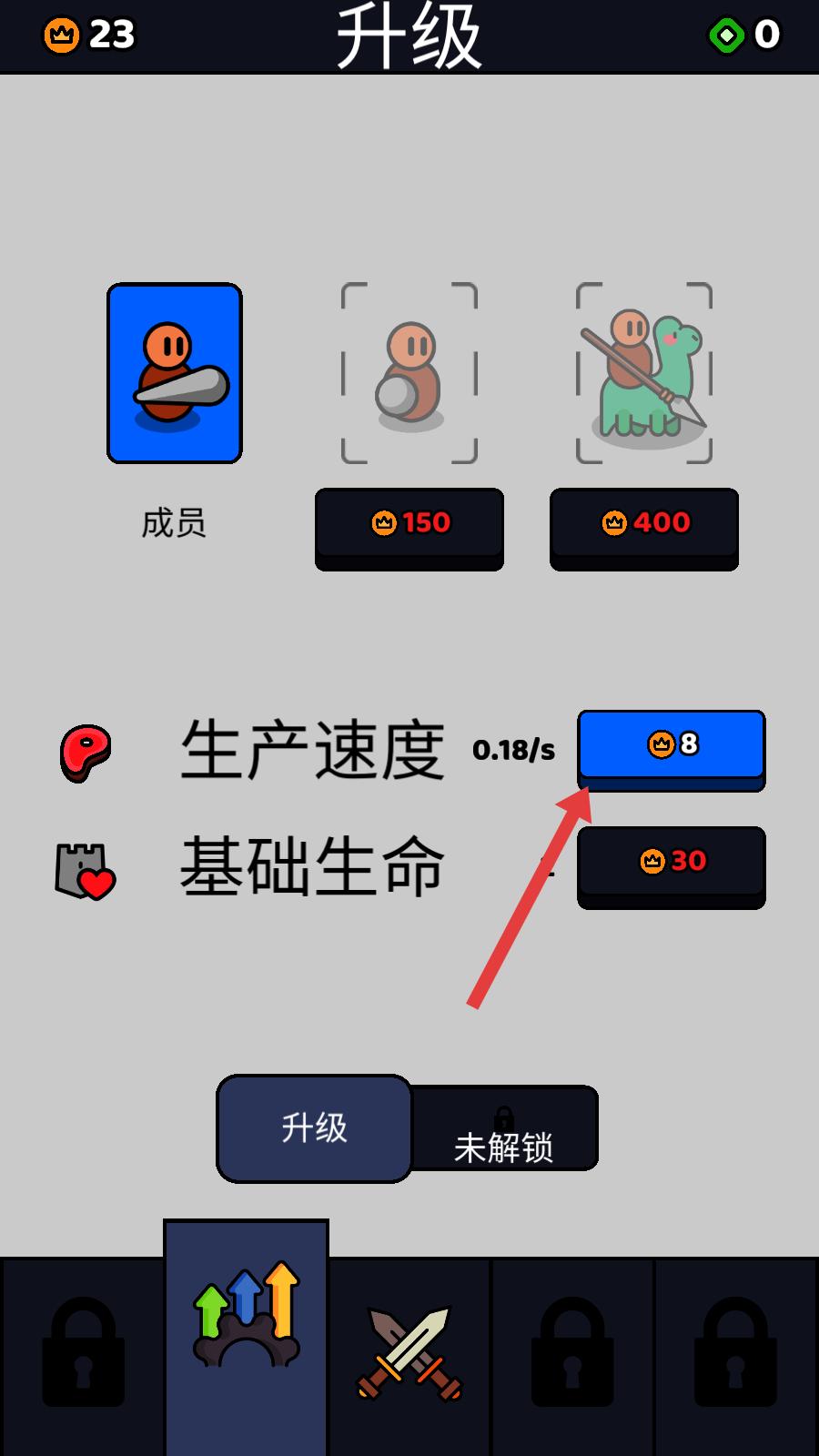 3、戰(zhàn)斗結(jié)束后,會(huì)進(jìn)入升級(jí)界面,依據(jù)戰(zhàn)斗中積累下來的資源,點(diǎn)擊對(duì)應(yīng)的升級(jí)按鈕,對(duì)己方的相關(guān)能力進(jìn)行提升,讓后續(xù)的戰(zhàn)斗更有優(yōu)勢。